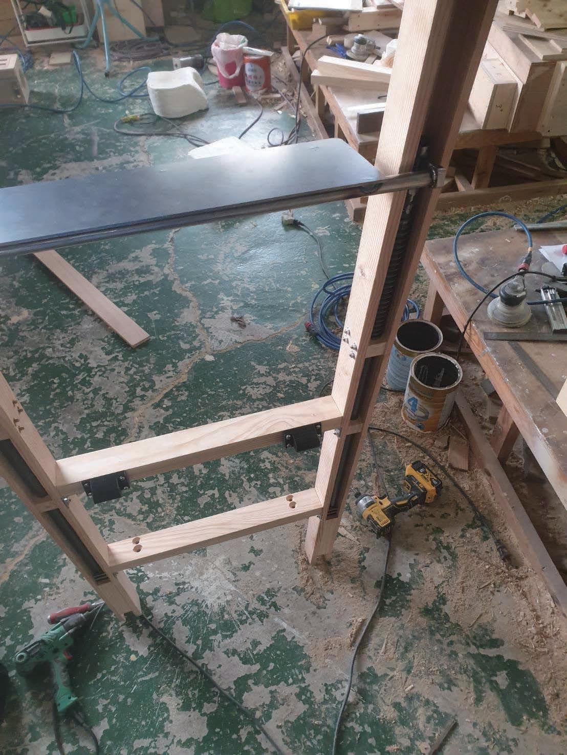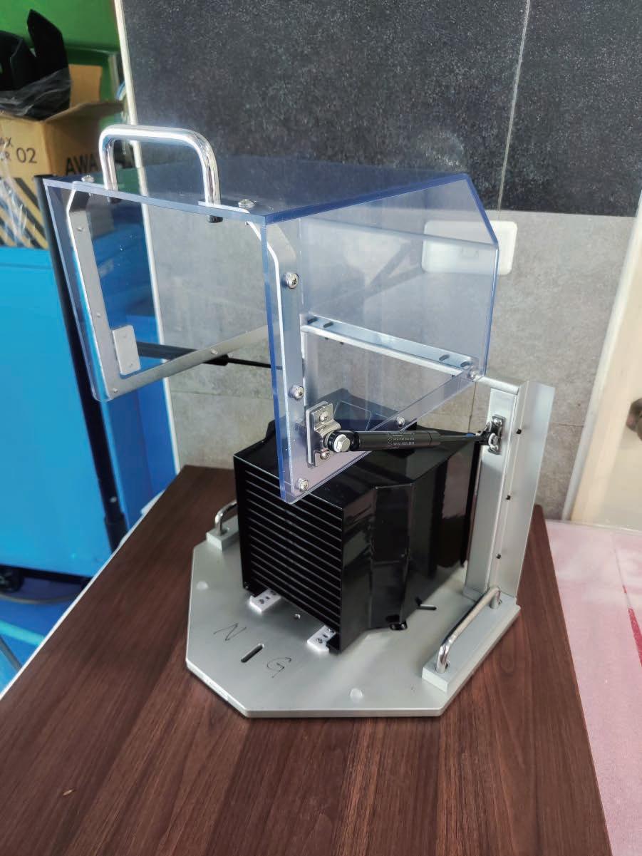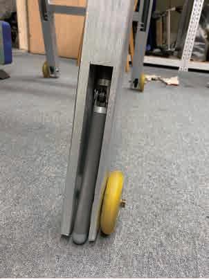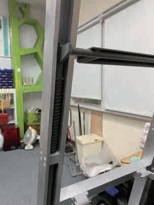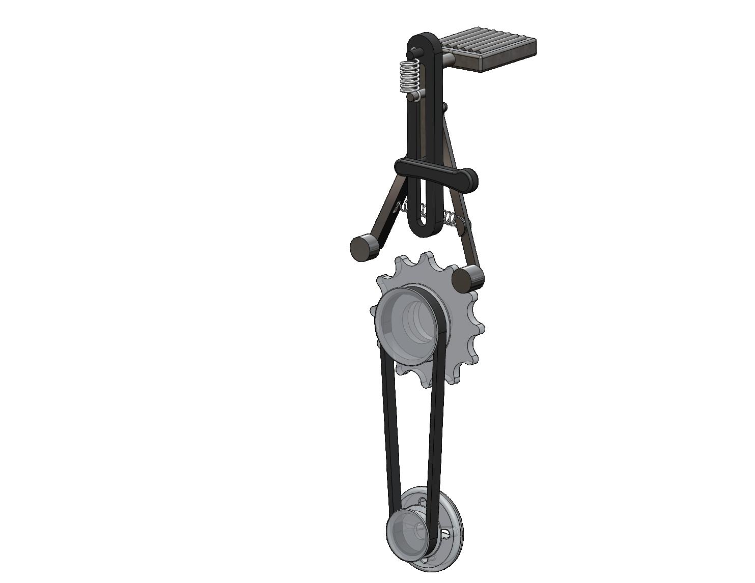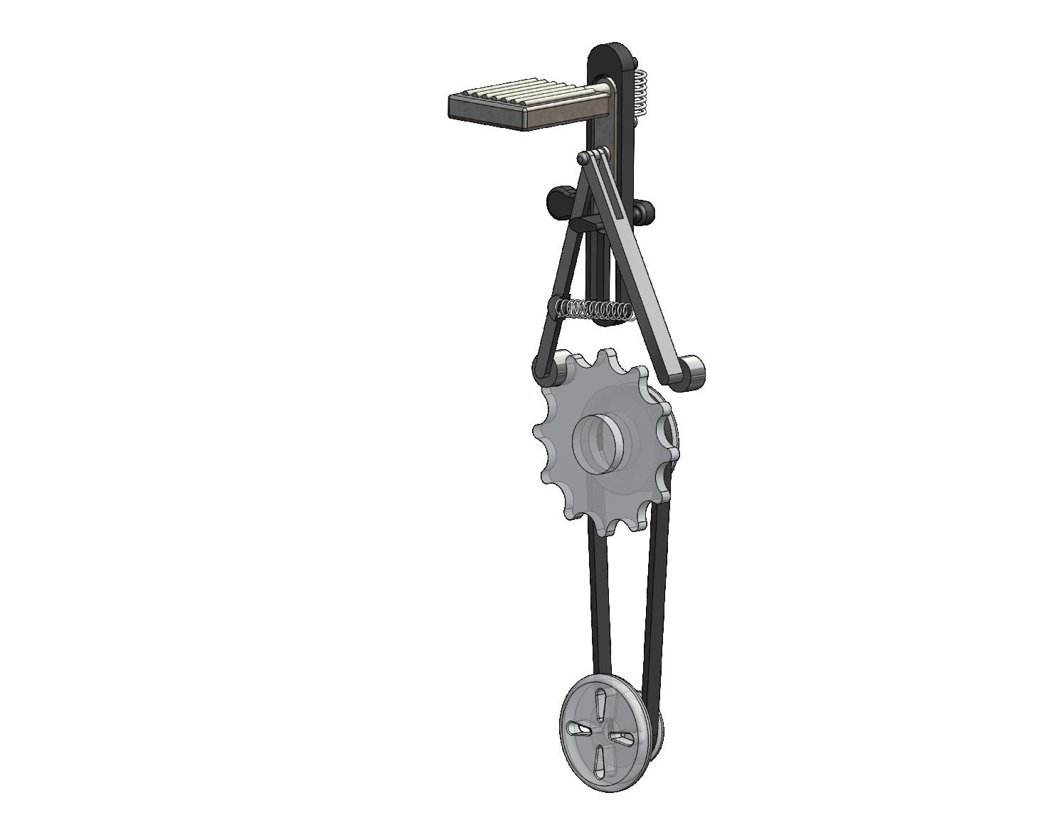 在第一版經過討論過後,認為油漆師傅在工作時 無法空出手部去操作搖桿,所修改過後以腳踏帶動。