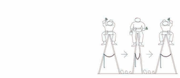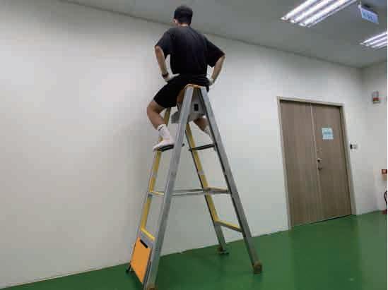 擺放完畢上梯進行工作 利用移動工作梯完成作業 結束工作下梯收納返工