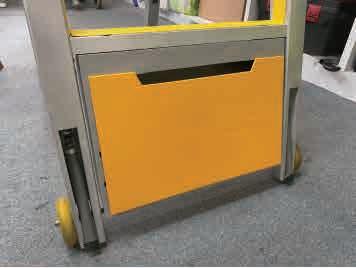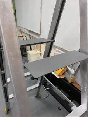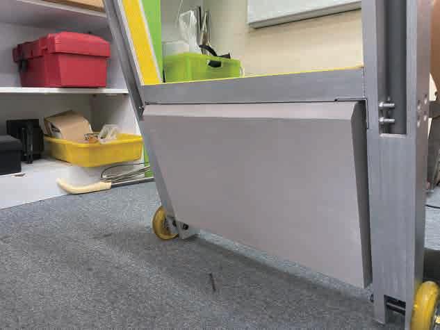 工作梯上方設置前抽的工具箱,方便使用者坐在工作梯上方的時候拿取工具; 下方儲物箱則放置一些需替換的物品或消耗品,如棉布手套、垃圾袋、抹布等。