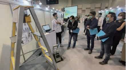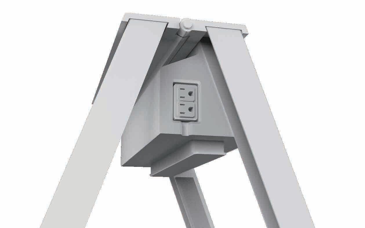 將行動電源與工作梯做結合,讓工作者在高處作業也能方便使用電動手工具, 主要是縮短電線的長度以免太長的電線與工作梯纏繞發生危險。