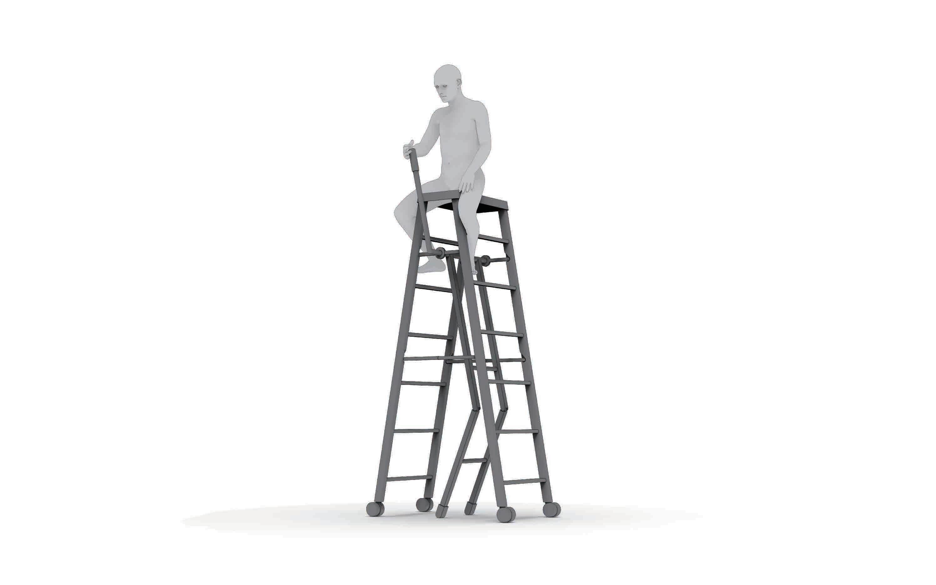 油漆師傅在使用梯子工作時,手部需要做許多工作, 設計讓手部操作梯子移動略顯多餘且徒增使用者的不便。