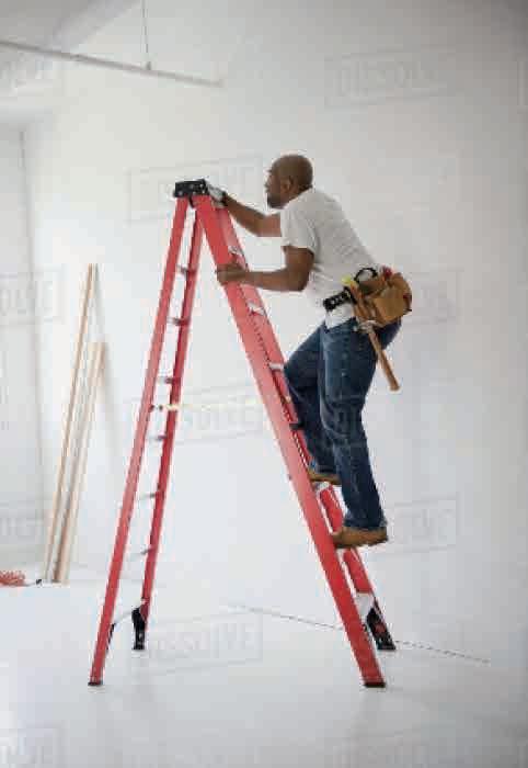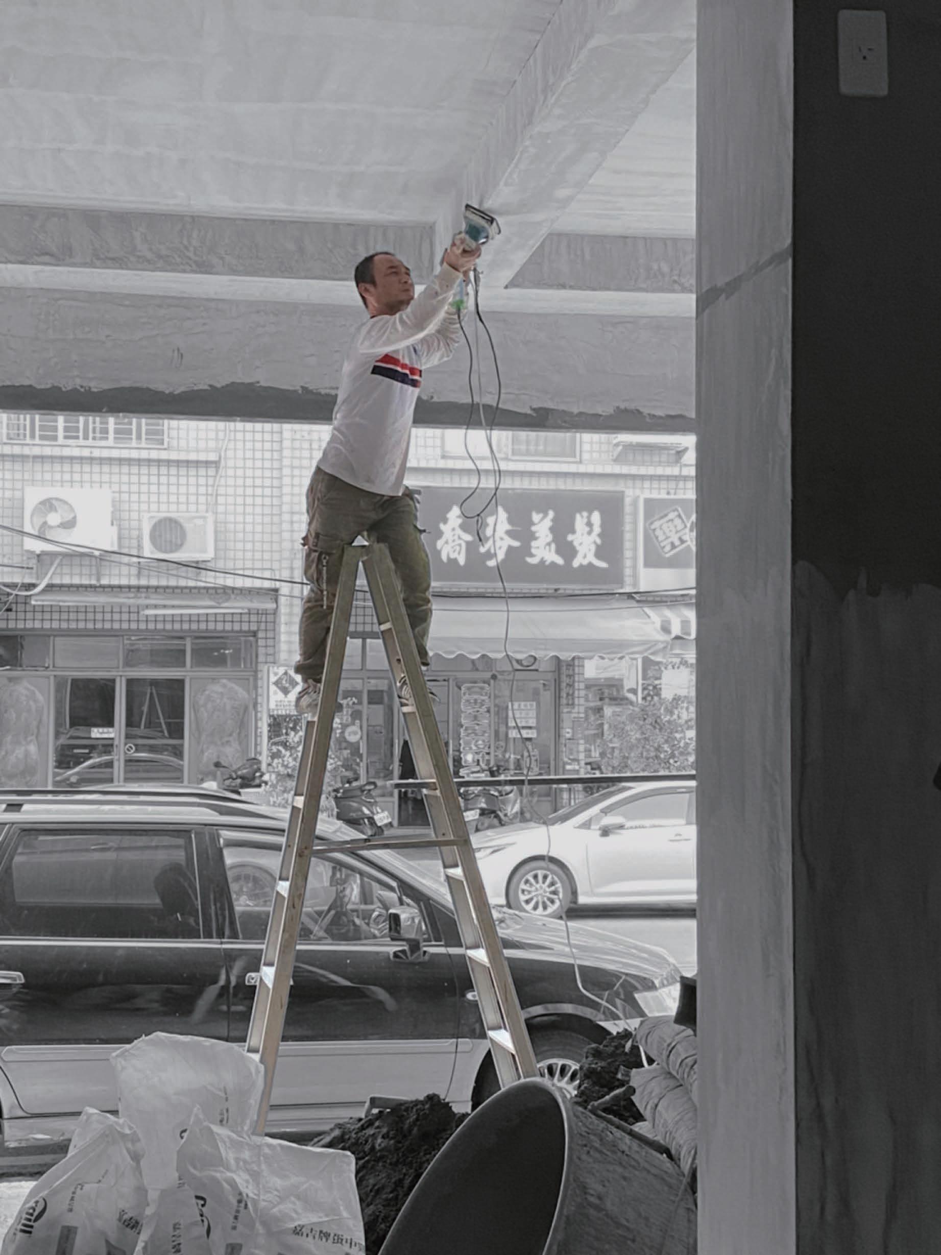 「走梯子對於油漆師傅來說是必要的技能之一,剛開始學習的時候常常重心不穩摔落 加上工作環境較雜亂,移動時要特別小心。 」