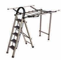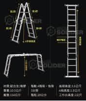(一)在使用合梯作業時可以直接地做水平移動,無須上下樓梯搬移梯子至定位, 增加工作效率和減少體力的耗費,更加便利。