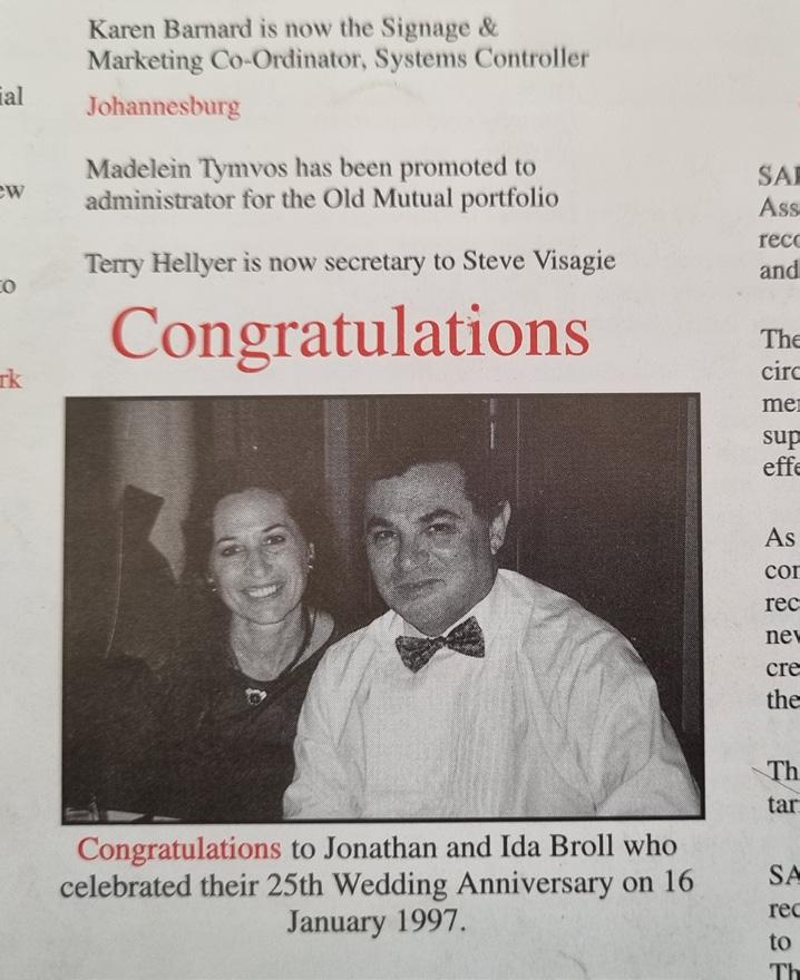 Jonathan Broll & (late) wife, Ida Broll celebrating their 25th Wedding Anniversary in 1997!