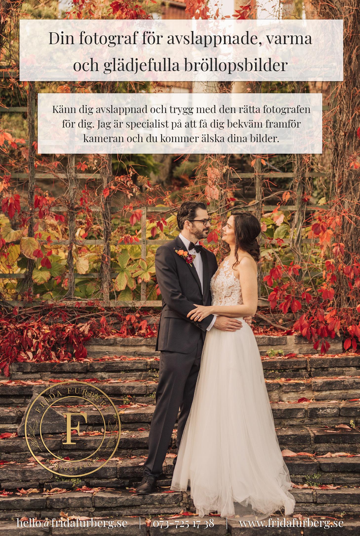 Det kan vara svårt att veta exakt hur lång tid varje del av dagen kommer ta. Allt detta beror på hur många ni är i brudföljet, hur lång tid det tar att åka mellan olika platser och hur många gäster ni har. Men här kommer en generell uppskattning på det olika delarna under dagen; Frisör/makeup: 3-4h, Porträttfotografering: 2 h