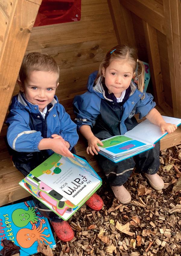 This term Kindergarten 1 have particularly enjoyed accessing the large sandpit where they have dug, built and knocked down many sandcastles. They are strengthening their gross motor skills pushing the wheelbarrows full of apples from our apple tree and creating music on the outdoor drums and xylophones.