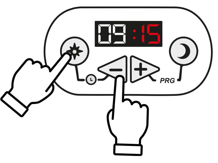 Press & release the sun button & the minus button together to set the minutes & to finish.