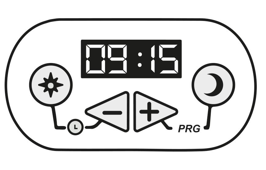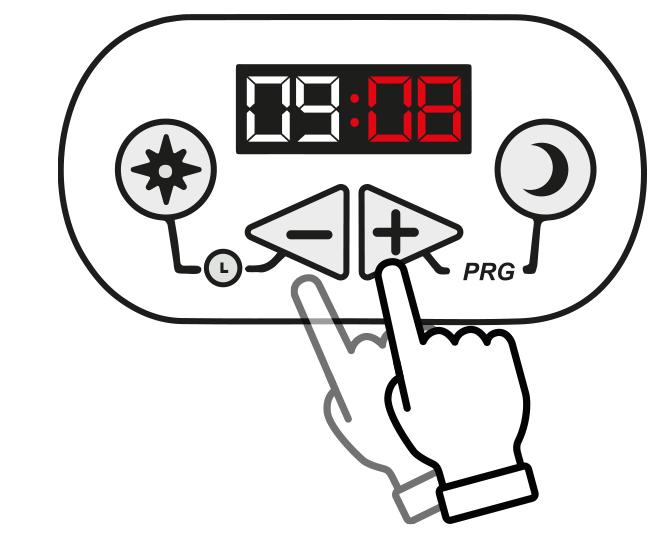Press & release the sun button & the minus button together to set the day & move onto the time. The hour will now start to flash. Use the plus or minus buttons to adjust to the current hour time.