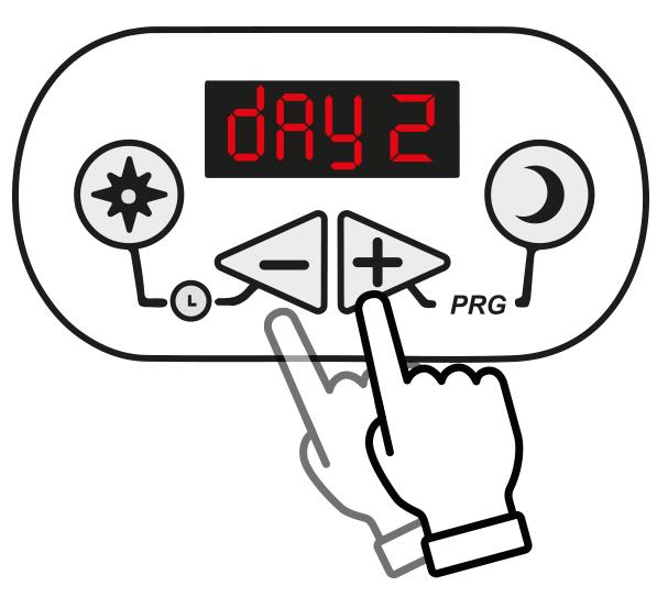 Press & hold the sun button & the minus button together until the day is displayed & starts to flash. Use the plus or minus buttons to adjust the current day.
