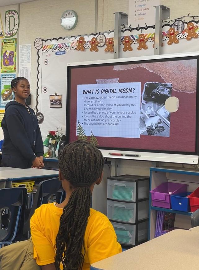 In regards to Digital Media, students planned and filmed a variety of small projects. Students researched audio clips that they believe captured the essence of their cosplay characters. Students produced and directed their own introductory videos, as well as wrote the scripts needed for our Capstone project.