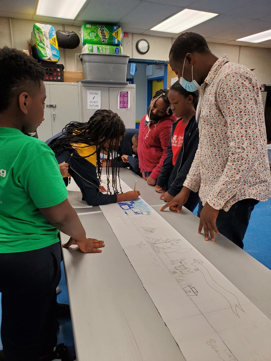 This project started in the bustling hallways of Bronx Charter School for Better Learning, where the voices of 4th-grade students echoed with passion as they delved into spirited discussions about pressing environmental issues during their Social Studies lessons. Two big themes in New York State’s Science/Social Studies curriculum are cause and effect relationships and interdependence. The students studied the relationship between the burning of fossil fuels and greenhouse gas emissions, they learned about the harmful effects of deforestation and the benefits of reforestation (and how photosynthesis explains how trees absorb carbon and clean the air); they learned how reusing, reducing, recycling, and repurposing curb climate change and plastics in the ocean. Our students also learned about Great Black Activists during Black History Month, and are also learning, in our collaboration with our ELA team, about how they too can act as activists through persuasive artwork.