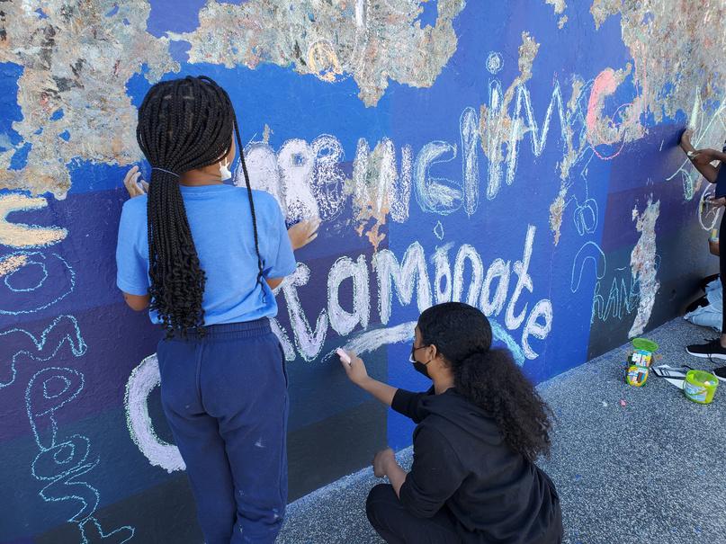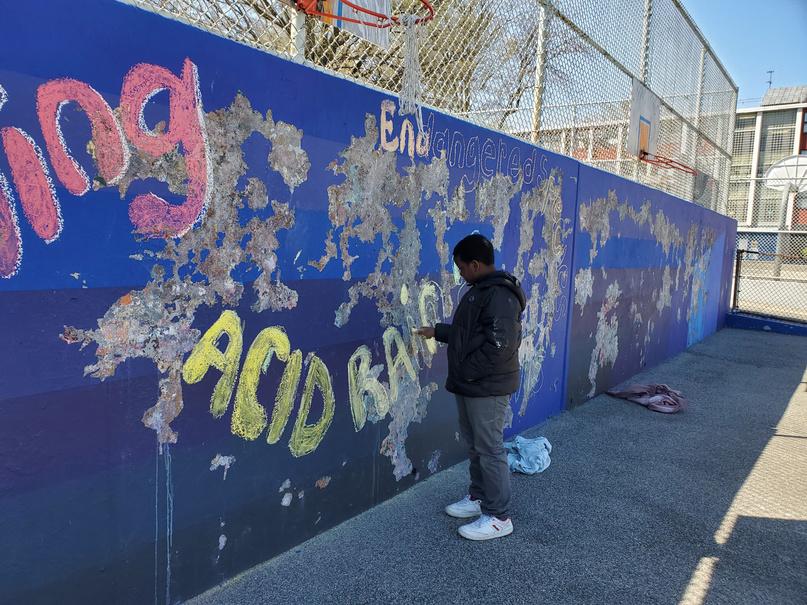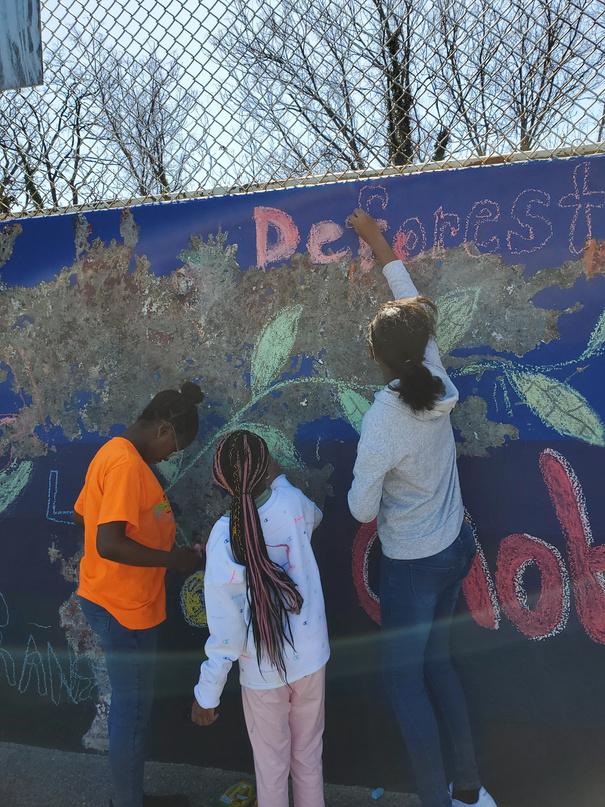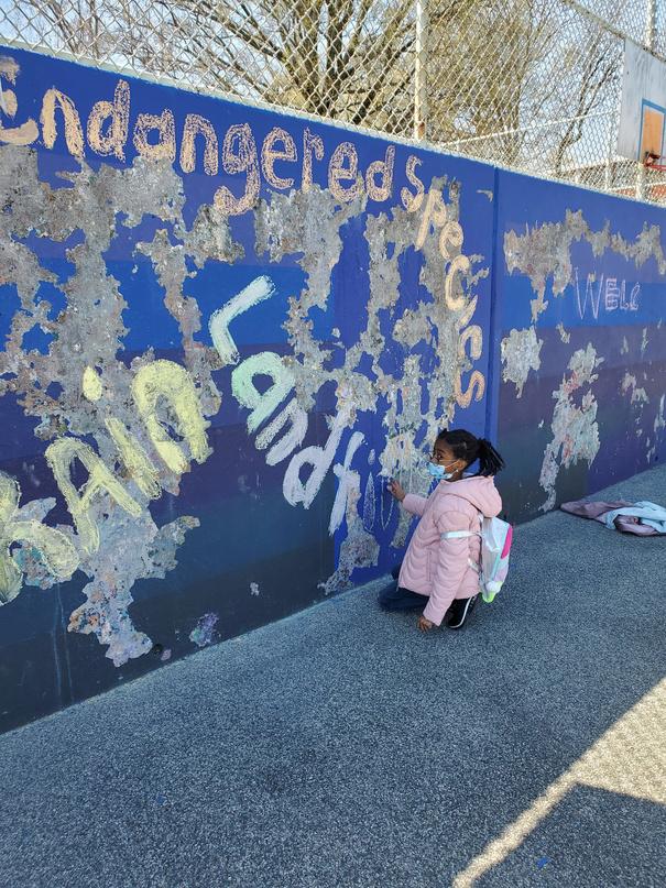 While awaiting the necessary approvals and the disbursement of funds, the students found another way to channel their artistic energy. In celebration of Earth Day 2022, they invited fellow playground enthusiasts to participate in the creation of a temporary chalk mural, showcasing their flair for graffiti art. Though a downpour washed h b masterpiece the follow moment was forever p of a