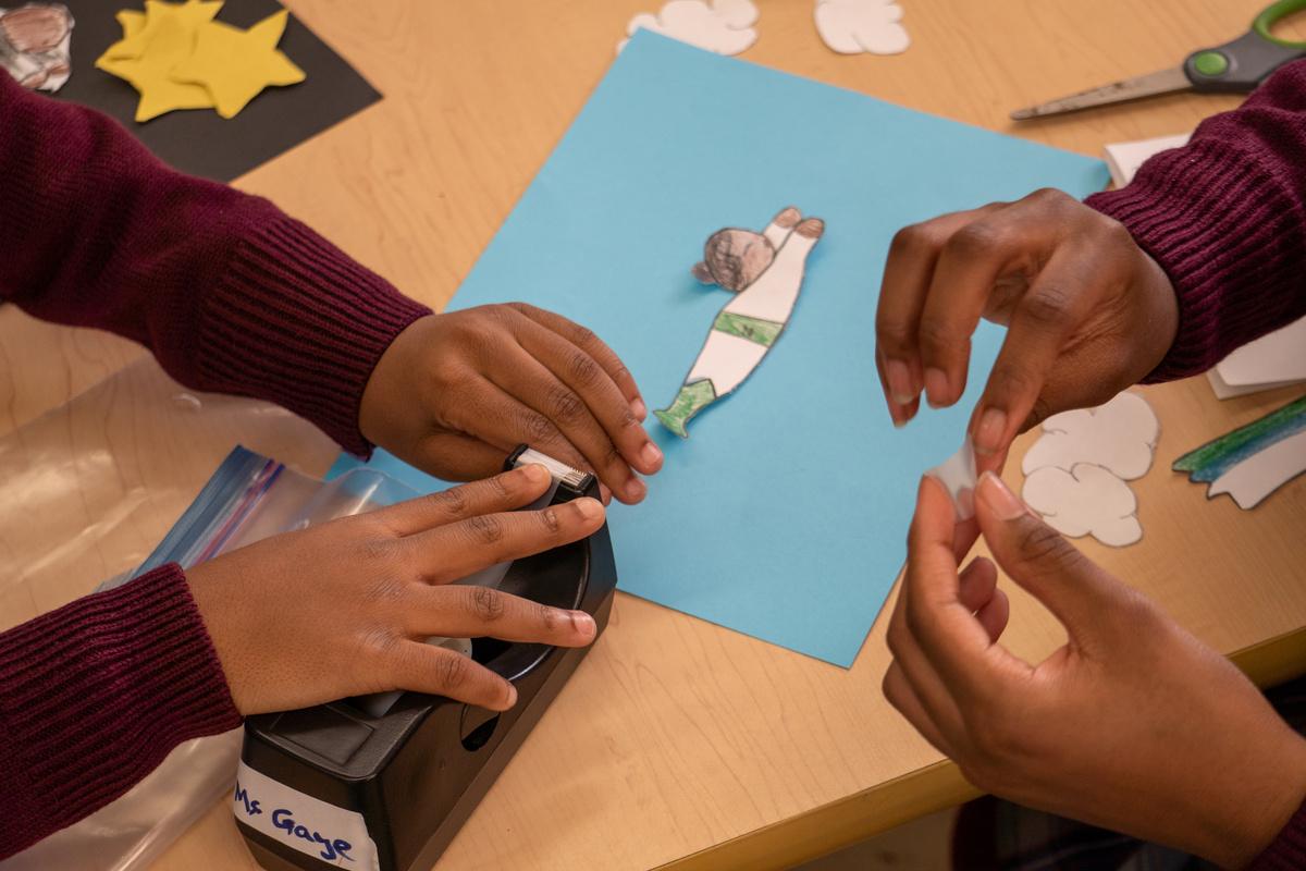 Additionally, students crafted short films about superheroes flying through the air. Students made small adjustments to their artwork to show capes flapping in the breeze and the superheroes soaring to varying heights, on their way to fight crime,