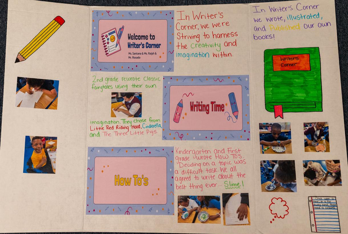 Each student engaged in the writing process by selecting a topic of interest, developing characters/settings in the genre of choice, drafting his/her story, editing after receiving feedback from their peers and their teachers, and lastly publishing their work.