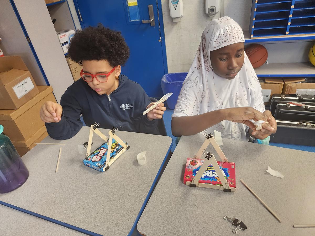 Students tackled challenges together while also learning about engineering principles. These challenges included the creation and use of catapults, parachutes, and zip sails.