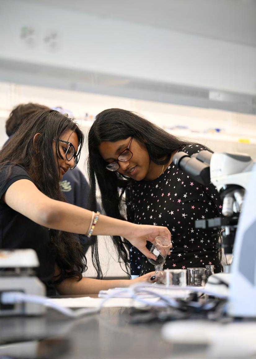 In the school year lab skills group, students learn and apply different techniques with lab partners to conduct experiments. For Annalise Zhang ’28, the program sparked her interest in scientific investigations.