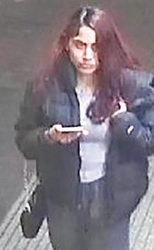 She is described as a female with medium complexion and medium build with dark red hair. She was last seen wearing a gray shirt, blue jeans and black sneakers. She also wore a black puffy jacket and had a small handbag.