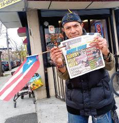 Bronx subway mugging hero Alfred Troche, 53, stopped by Bella Pizza at Third Avenue and East 184 Street where he picked up the latest issue of the Bronx Voice-- with Troche on the cover.