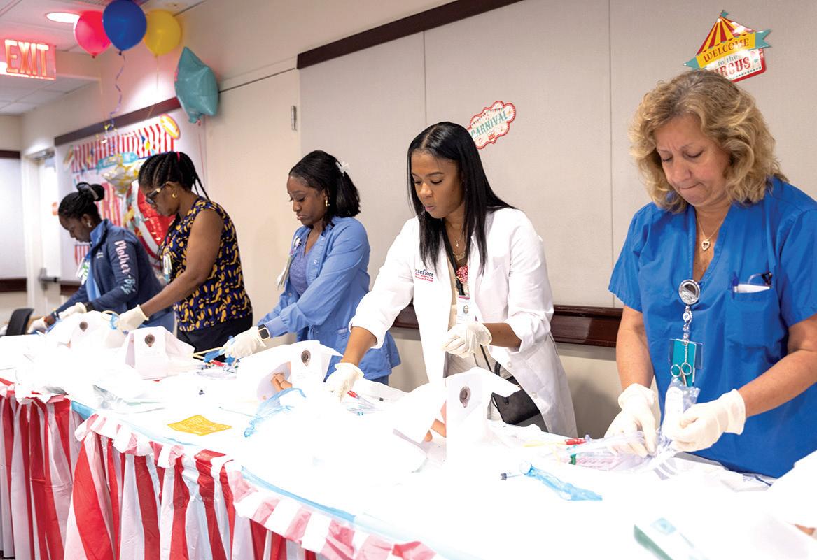 A new nursing education program has launched at Montefiore which provides annual competency training and skills fairs for nurses across the Maternal Child Health Departments and Neonatal Intensive Care Units at the Wakefield and Weiler campuses. Each fair includes around 30 nurses who attend a full day of hands-on education and training, led by Nurse Educators, Patient Care Coordinators and fellow nurses, focused on a range of important health topics including postpartum hemorrhage, preeclampsia, newborn resuscitation, infection control and breastfeeding.