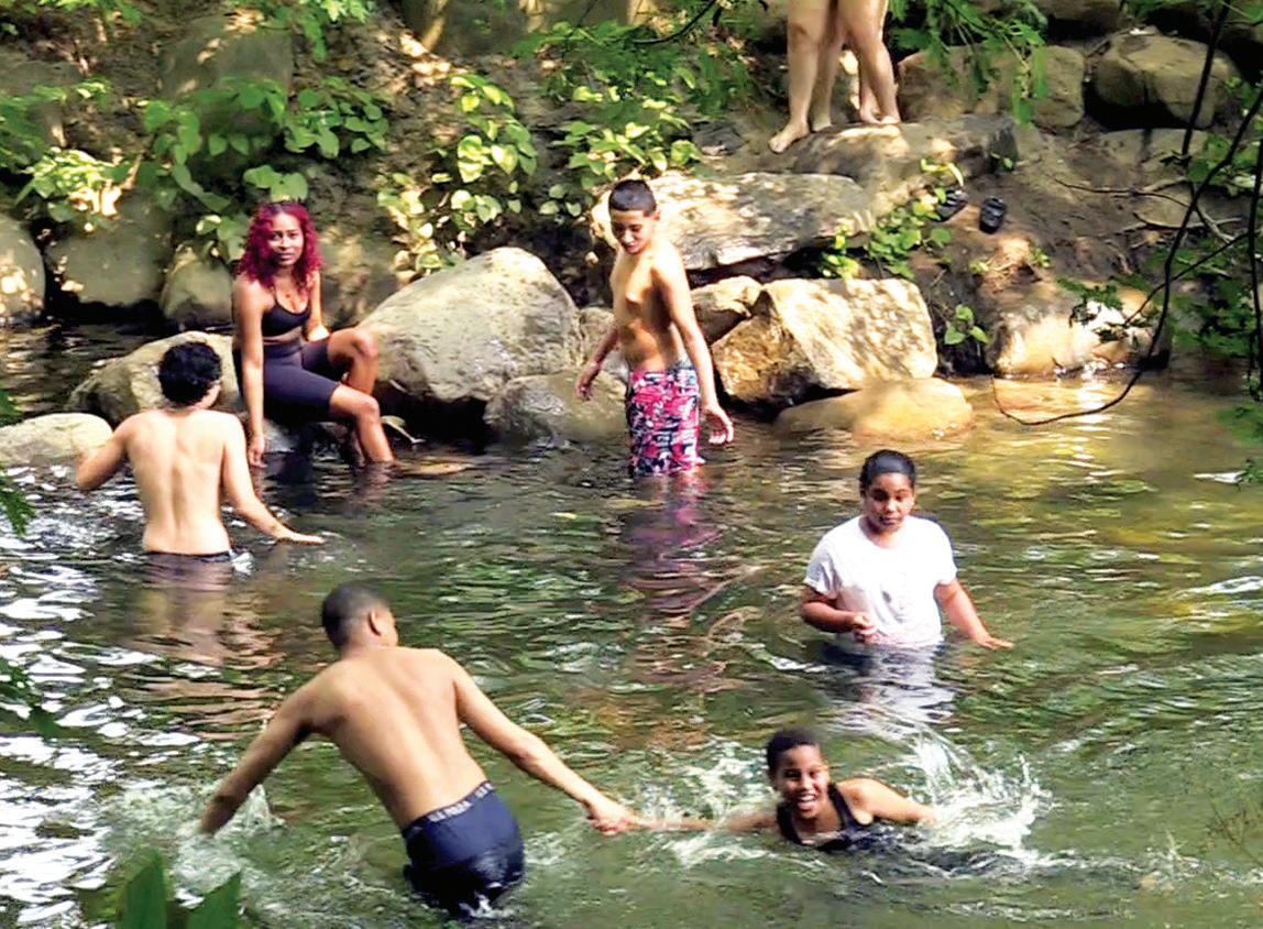On August 1, thirteen people were observed swimming and jumping into the river deep inside the Bronx River Forest, located north of the Burke Avenue Bridge between Norwood and Allerton.