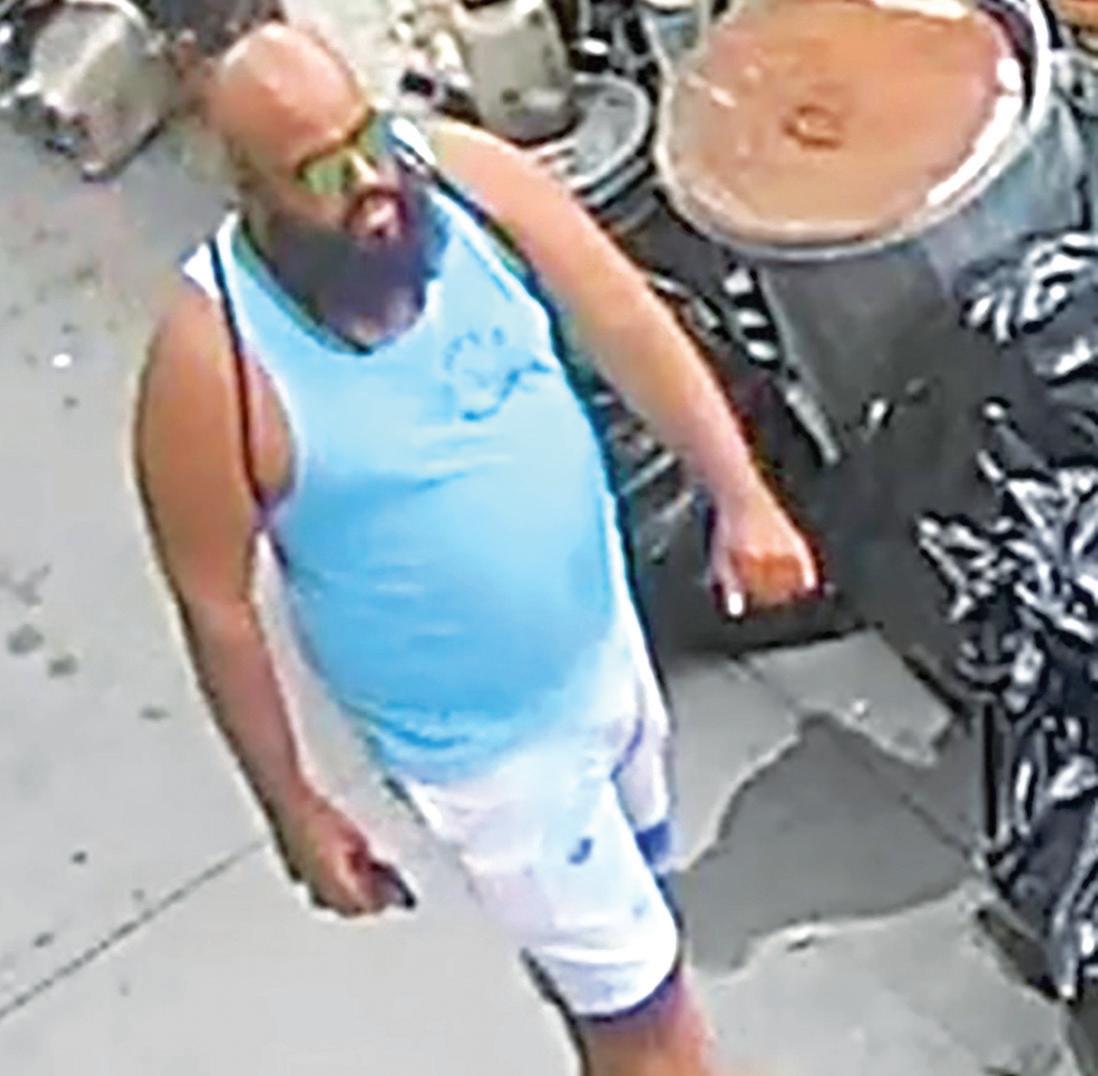 complexion who is 6 feet tall and has a heavy build. He is bald with a bushy beard. He was last seen wearing a blue tank top and white shorts. He was also seen wearing sandals and sunglasses.