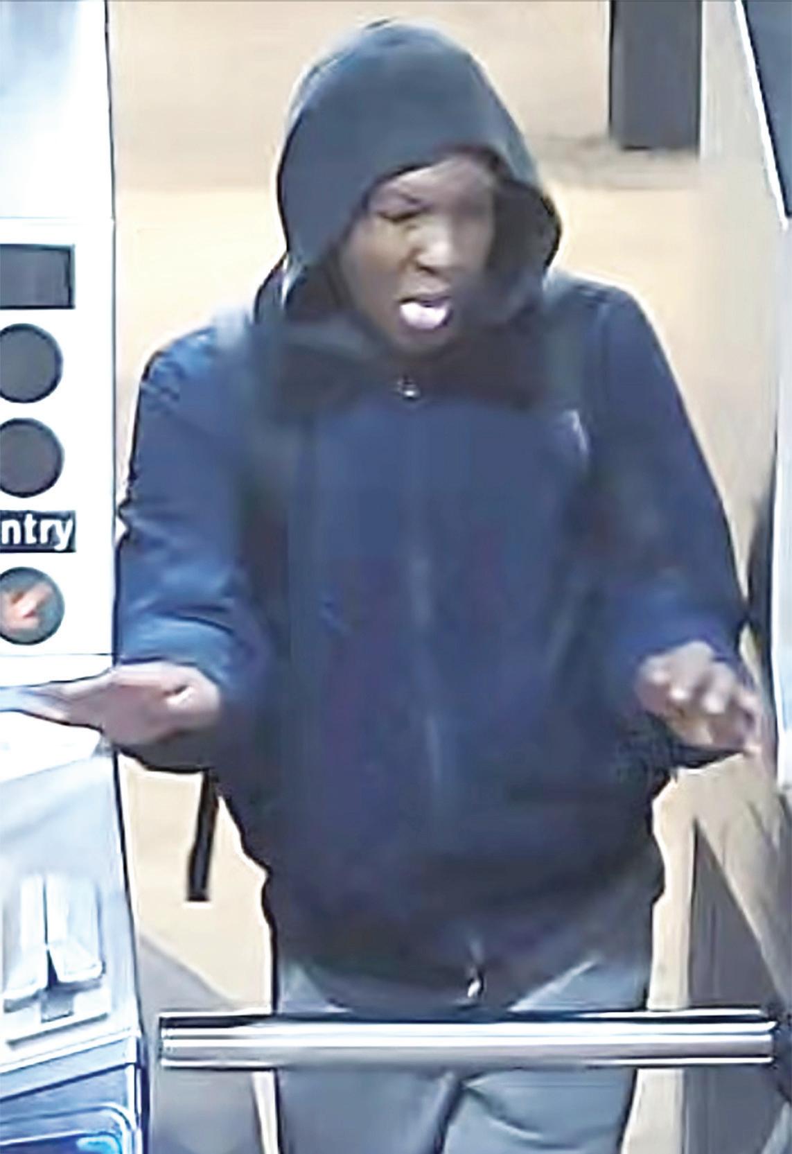 The suspect was seen on the video leaving the turnstile while smiling with his tongue out and waving his arms.