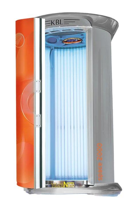 The KBL Space 2000 is a Luxury Standup tanning Experience. The high wattage lamps combined with a Vibrashape platform – this unit creates a dark, even tan. This the only Standup Sunbed we have that has Vibrashape, and the result is amazing circulation and a workout creating ultimate melanin production for a great tan. The sleek exterior, and easy to use buttons make this Standup a wonderful experience. This bed is excellent for Vitamin D production as it has high UVB output.
