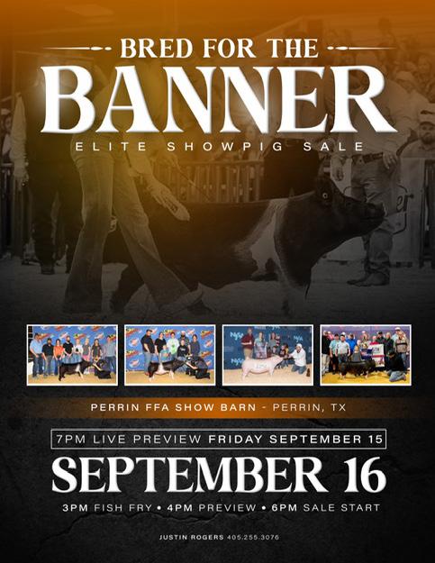 4F Livestock.............................................................174 Adams Construction & Fabrication 14 Alderson Farms 77 Atkinson Showpigs 151 Belew Farms..............................................................21 Beyers Farms...............................................................5 Bishop’s Showpigs.....................................................23 Blaizin’ 7’s & Edwards Family Genetics.....................56-57 Blount Farms............................................................101 Bragg Farms 150 Bred for the Banner..................................................144 Breeders Choice Pig Sale.........................................145 C-C Showpigs...........................................................18 C&P Livestock...........................................................78 C4 Showpigs.............................................................66 Capital Farm Credit.....................................................15 Circle L Showpigs......................................................22 CR’Z J Livestock......................................................150 Creative Awards.........................................................37 D&D Texas Outfitters..........................................116-117 DL Showpigs...........................................................177 Doege Showpigs.......................................................60 Elrod Showpigs..........................................................66 Exceed Genetics........................................................22 F2 Genetics.............................................................173 Foote Farms............................................................175 GO Genetics..............................................................26 Harkey Farms...........................................................IFC Heffernan Genetics.....................................................15 HF Genetics................................................................3 JBS Live Pork............................................................10 JS Showpigs.............................................................68 Kings of the Hill/The Syndicate................................Cover KMAX Livestock.........................................................61 Merryman Showpigs...................................................36 MoorMan’s ShowTec..................................................20 MT Heart Livestock...................................................137 Mullin FFA Pig Sale.....................................................42 Multi Radiance Veterinary Services ..............................82 OptiWize...................................................................83 Rains Livestock............................................................4 RB2 Showpigs...........................................................21 Real Hog Farms.......................................................171 Rising Star Genetics...................................................19 Rival Genteics..........................................................154 Rock’n U Showpigs....................................................67 S&W Swine Productions.............................................60 Santa Anna FFA.......................................................150 Sequin Swine Breeders.....................................152-153 Showpig.com..........................................................122 State Fair of Texas......................................................11 SNJ Livestock..........................................................151 Sure Success Showpigs.............................................27 The Alliance..........................................................50-51 The Syndicate..........................................................136 Tongate Showpigs....................................................176 W. Rode & Sons.......................................................36 Weishuhn Brothers Showpigs....................................100 Wintex Farms............................................................BC