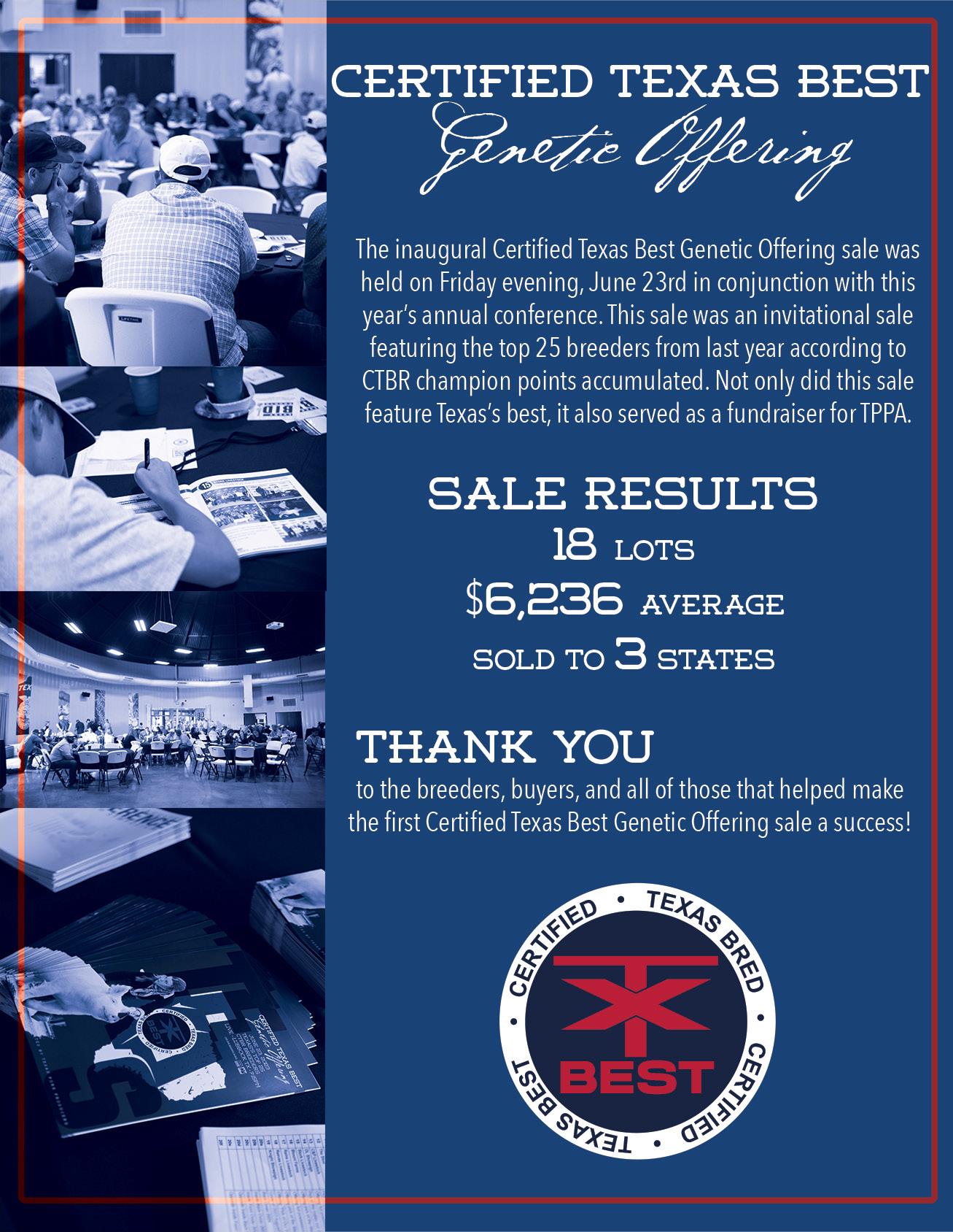 Producers Association at (806)705-6800 or tppa@texaspork.org. Advertisement Information Let’s get social! Major Show CTBR Certificates Available .................................Aug.1 Texas-Bred Select Sale Series #1.............................................Aug. 22 The Future’s Elite Online Gilt Sale .........................................Aug. 31 TPPA Membership Expires..................................................Aug. 31 Major Show Litter Records Due.............................................Sept. 1 Texas-Bred Select Sale Series #2.............................................Sept. 5 Texas Pork Junior Ambassador Tour...................................Sept. 5-9 SFT Breeder Logs Due.........................................................Sept. 10 SFT Certificates Increase to $14..........................................Sept. 10 Texas-Bred Select Sale Series #3...........................................Sept. 19 FACEBOOK Texas Pork Producers Association INSTAGRAM @texaspork Executive Director Colby