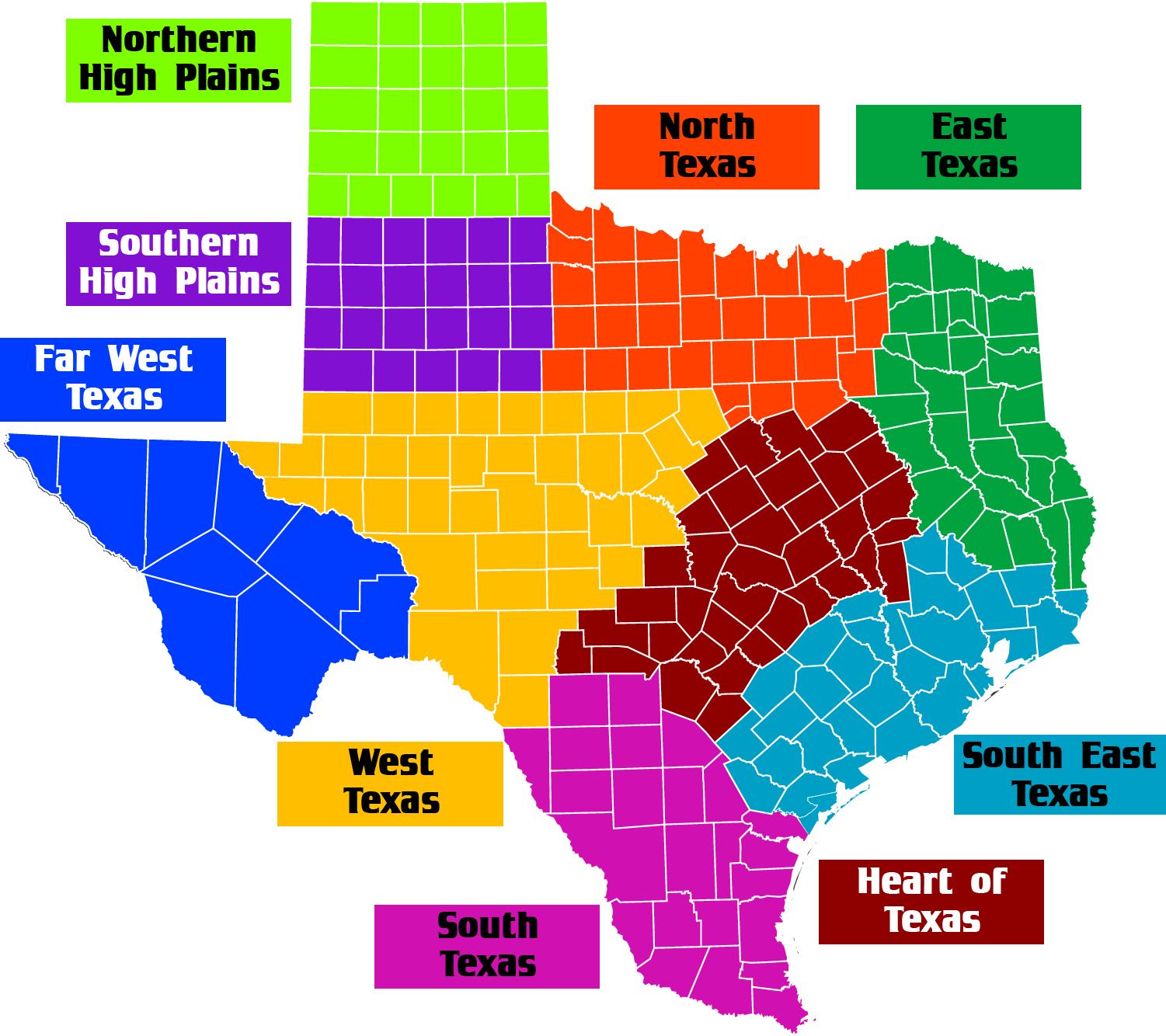 The Texas Pork Producers Association is not split into regions. The map provided was created for convenience and ease of finding breeders near you!