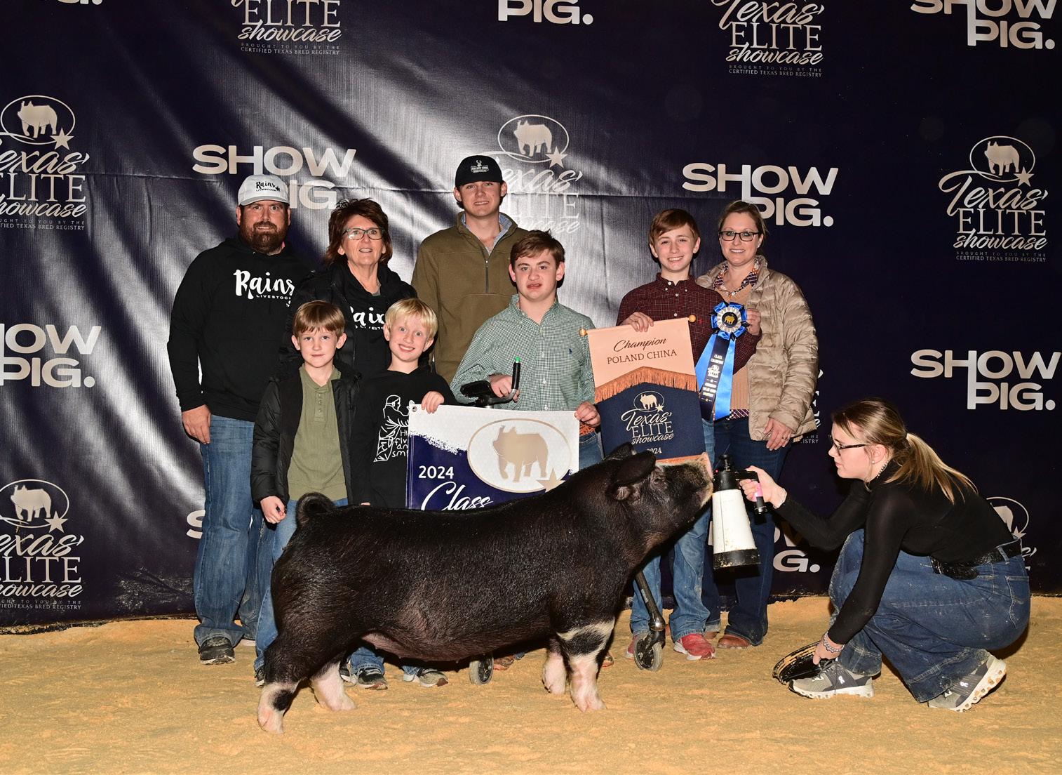Over the years, Rains Livestock has had tremendous success at Texas majors. In 2024 alone, the firm raised the Reserve Champion Hampshire barrow at San Antonio, Champion Poland gilt at San Antonio, Champion and Reserve Cahmpion Poland gilt at the Texas Elite Showcase, Champion Yorkshire and Reserve Champion Light Crossbred barrows