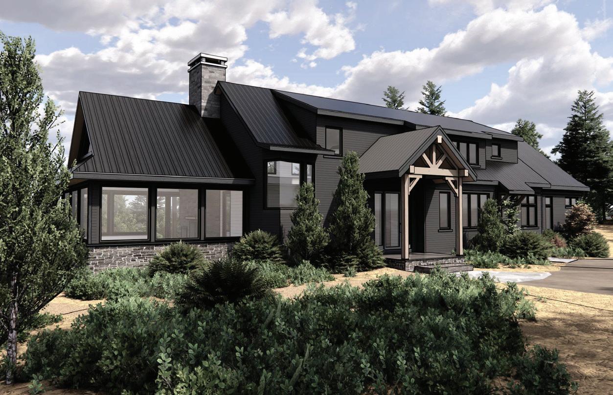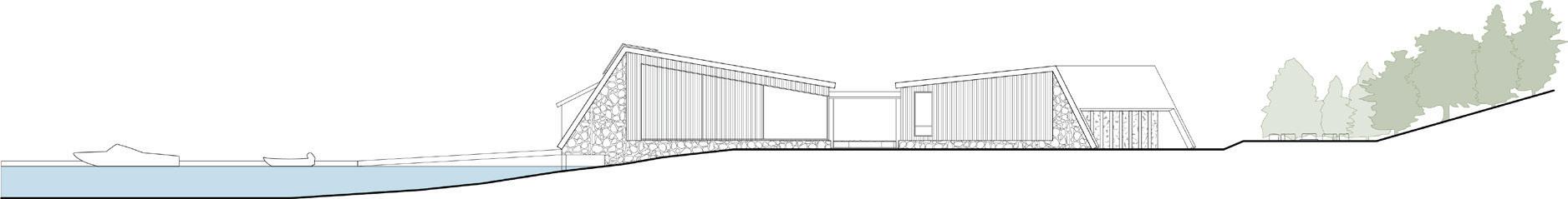 Design a lodge on the French River that integrates thoughtfully into the site.
