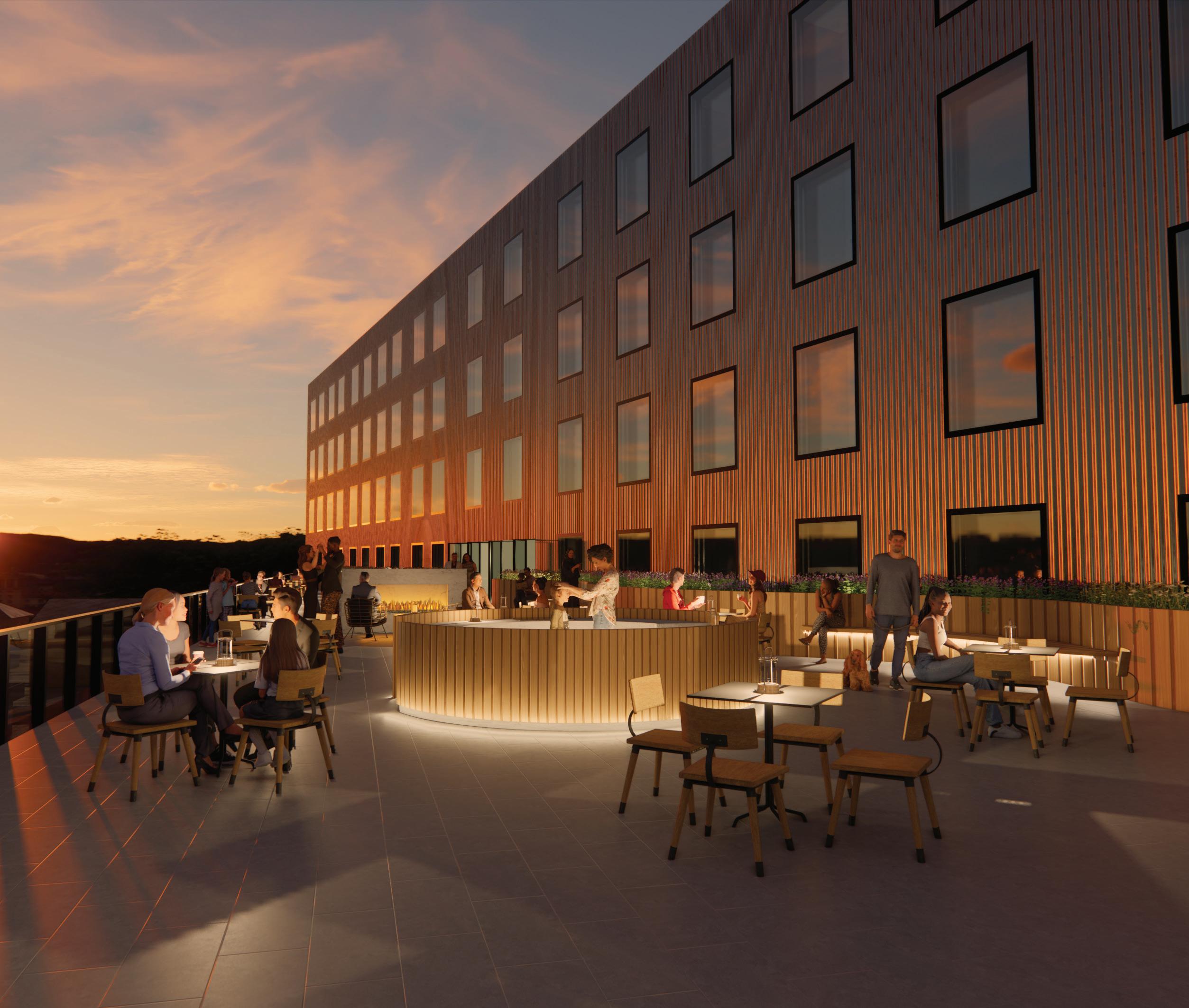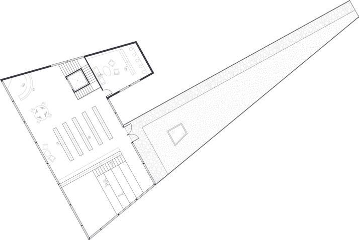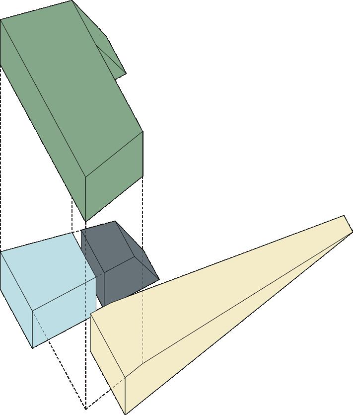 This unique circumstance precipitated a building shape that mimics the site’s boundaries and is “pulled from the earth”, creating two cores.