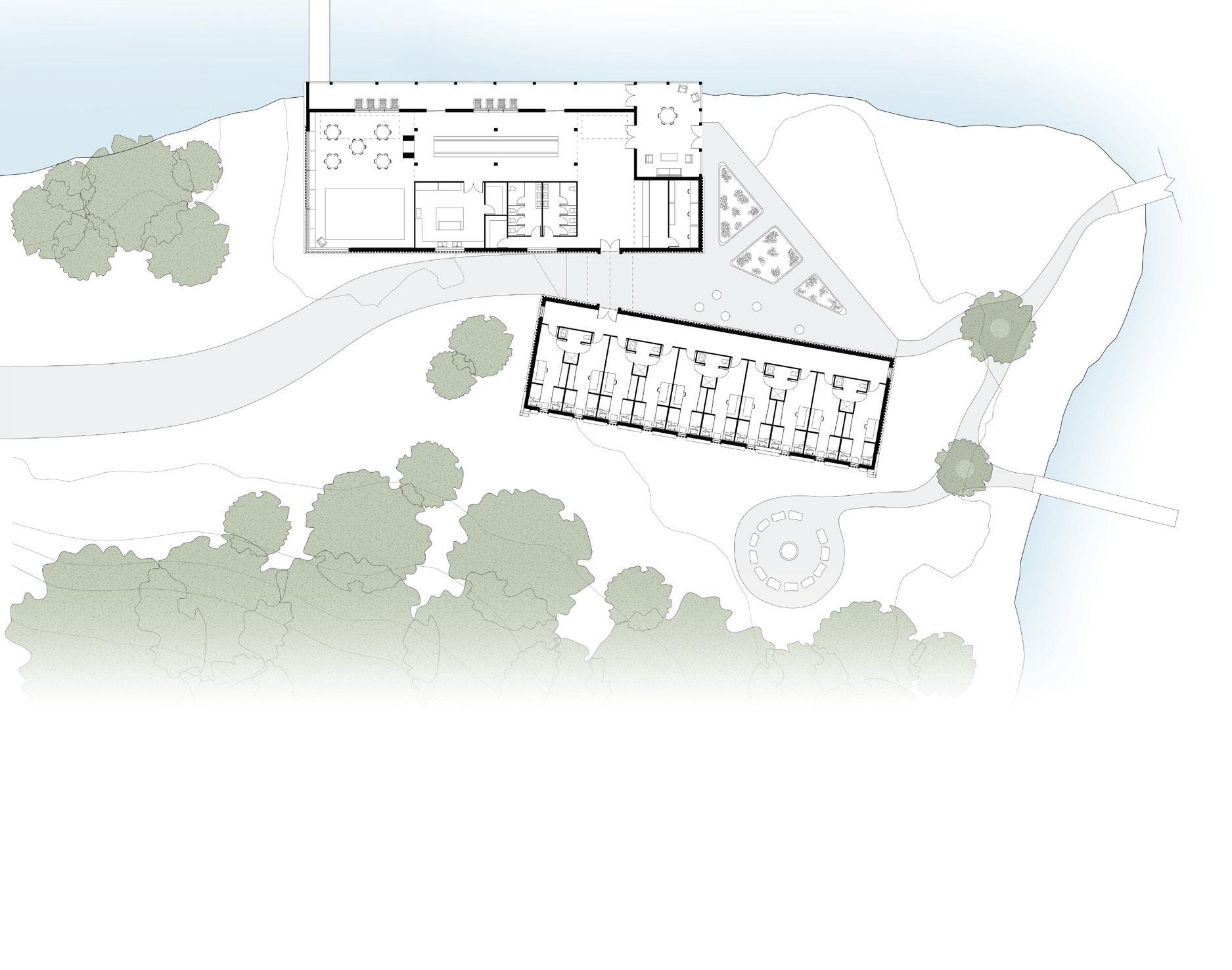 Concentrated along the mouth of Pine Cove, this youth camp and education centre focuses on learning through exposure to nature. Through observation of surrounding species and appreciation of the natural world, opportunities arise for children to experience the site and with it, the complex relations that flow.