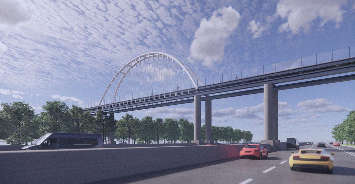 The site has a downward slope with an overpass continuing above.