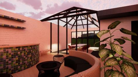 on tHe first floor, tHe kiDs rooms are as public or as private as tHey cHoose at any given time. wHen guests arrive, tHey can use tHe murpHy beD anD tHe folDing walls to create a tHirD beDroom on tHat level. tHe primary suite is locateD on tHe seconD level, intriguingly next to tHe living room. tHe purpose of juxtaposing tHe House’s most public space witH arguably its most private was mostly for safety concerns: we DiD not want tHe cHilDren on tHe level witH tHe front Door, witHout tHe parent’s beDroom being on tHe same floor. constricteD by a tigHt square footage requirement anD eager to builD as vertically as possible, we coulD not put botH cHilDren anD parents on tHe same level. to accommoDate for tHeir privacy neeDs, tHe parents Have a HiDDen entrance to tHe suite, a revolving bookcase Door. tHe most major kinetic element in our Design was tHe elevator floor. tHe floor rests on tHe tHirD level in its neutral position, creating an entire floor for tHe kitcHen anD Dining areas. Having an entire floor DeDicateD to preparing anD eating a meal makes every Dinner or breakfast just a little more special anD private. tHe Decision to incluDe a casual eating area in tHe kitcHen Despite being next to a Dining room recognizes tHat not all meals are formal, especially witH young cHilDren. tHe elevator floor connects tHe Dining room to tHe rooftop level, a special feature to take aDvantage of our location, Downtown boston. tHe observatory roof allows users to Dine unDer tHe stars, anD tHe sliDing glass Doors folD into eacH otHer to seamlessly blenD into tHe DesigneD roof area, complete witH a garDen, yoga area, full bar, anD (electric) fire pit.