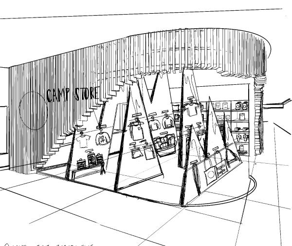 • incluDe firepits, seating areas, anD playscapes to be scatteD arounD tHe camp’s lanDscape to proviDe spaces for campers to interact witH one anotHer as well as nature.