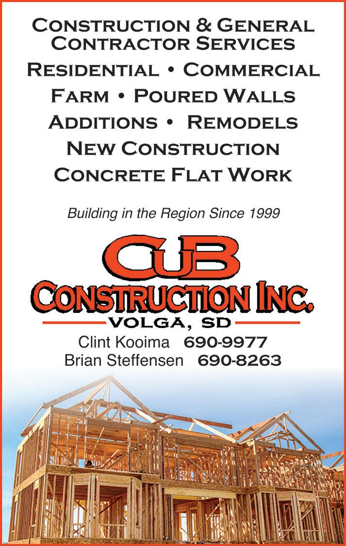 Cub Construction 106 W Hwy 14 Clint Kooima (605) 690-9977 Brian Steffensen (605) 690-8263