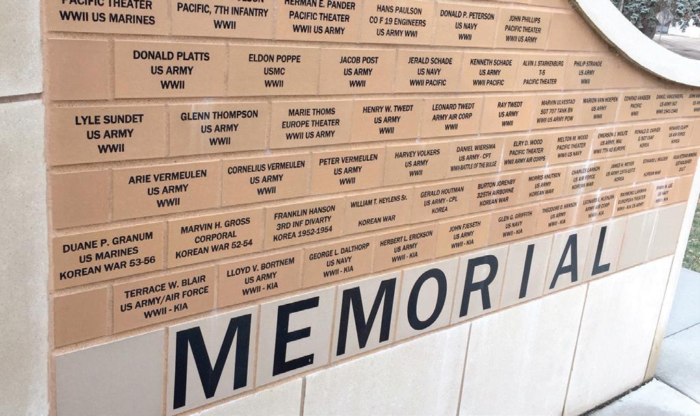 The memorial is three-sided with each side containing two panels of bricks. The bricks are engraved with the names of service members. There are more than 250 bricks already installed with more to be added in spring 2019. There is plenty of space available for bricks to be added in honor of veterans associated with the area. The engraved bricks cost $100 and Trygstad said