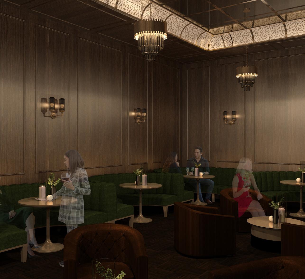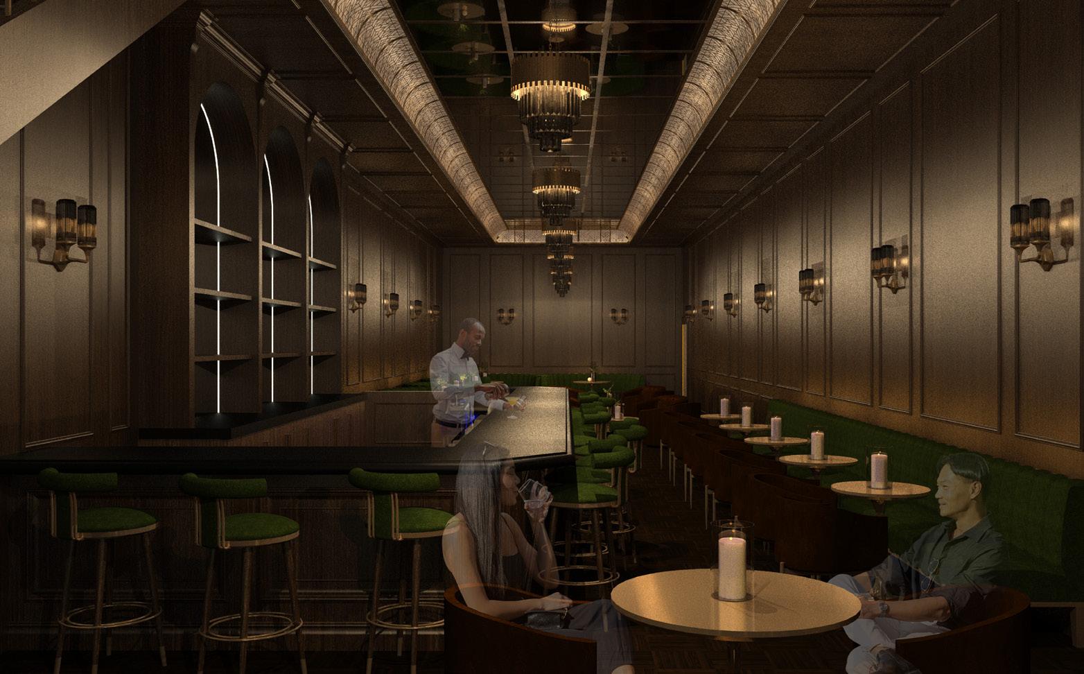 Create a stylish and intimate cocktail lounge that prioritizes ambiance, efficiency, and guest experience. Design a functional layout that optimizes space for service while maintaining an inviting atmosphere. Incorporate elements that enhance the speakeasy theme while ensuring operational efficiency.