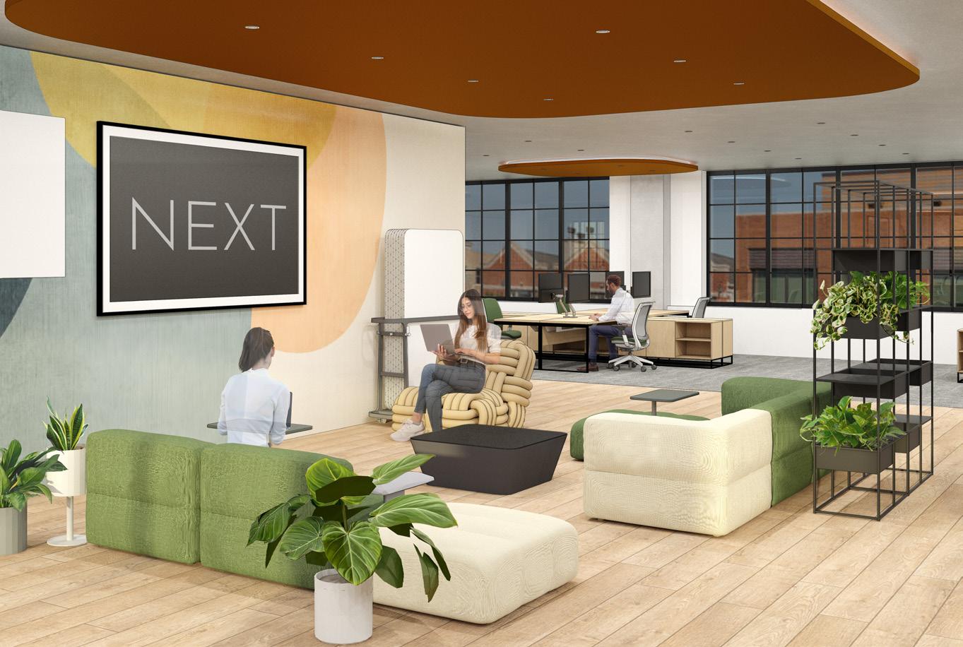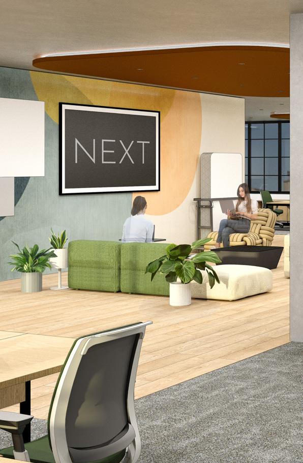 Wellbeing is a guiding principle when designing for the workplace. The new NEXT spaces physical needs of employees but also their emotional and cognitive needs. A variety of walk throughout the day. NEXT shapes an environment that supports positive emotions, users, their in-person as well as remote colleagues, and the NEXT organization.
