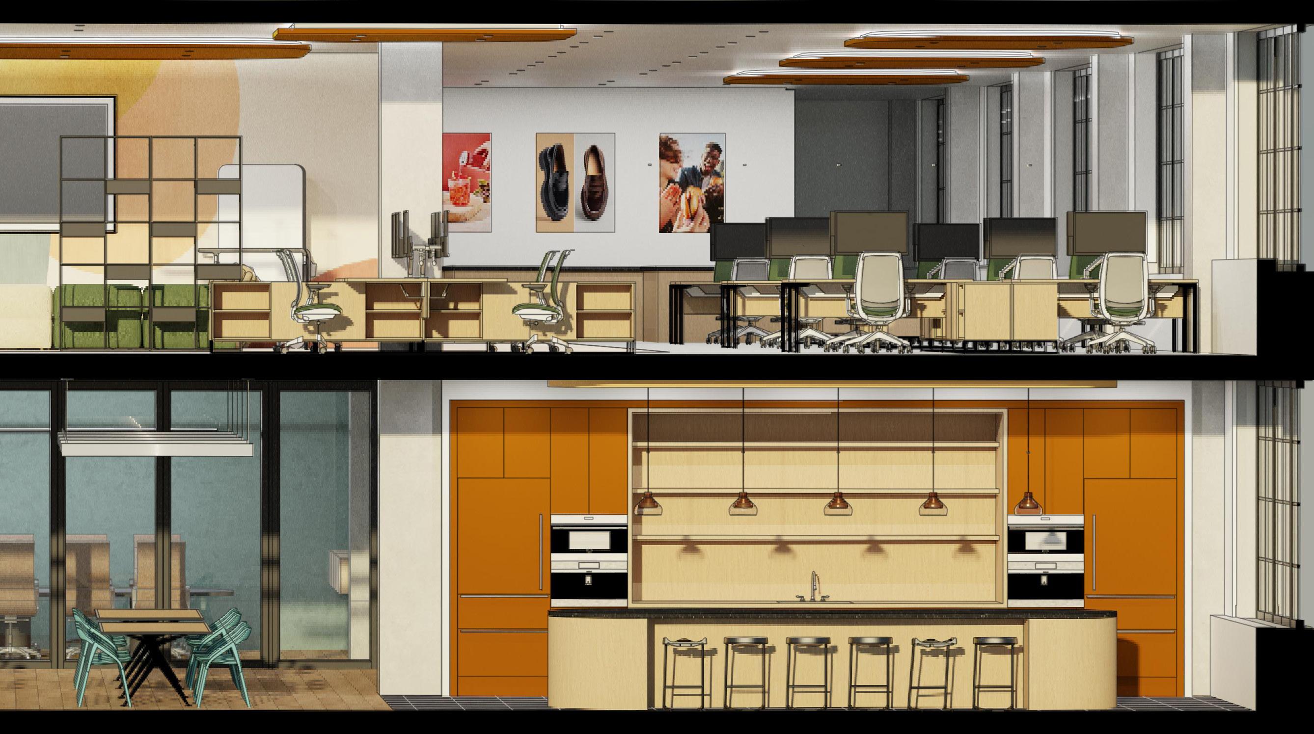 • Designed and space planned a two-floor, 16,000 square foot office space for an advertising agency based in Chicago. Project included research, schematic design, programming documents, renderings, and a presentation booklet.