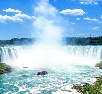 Experience the thundering power of Niagara Falls. Travel right to the edge of the crashing waters on the Hornblower Cruise tour.