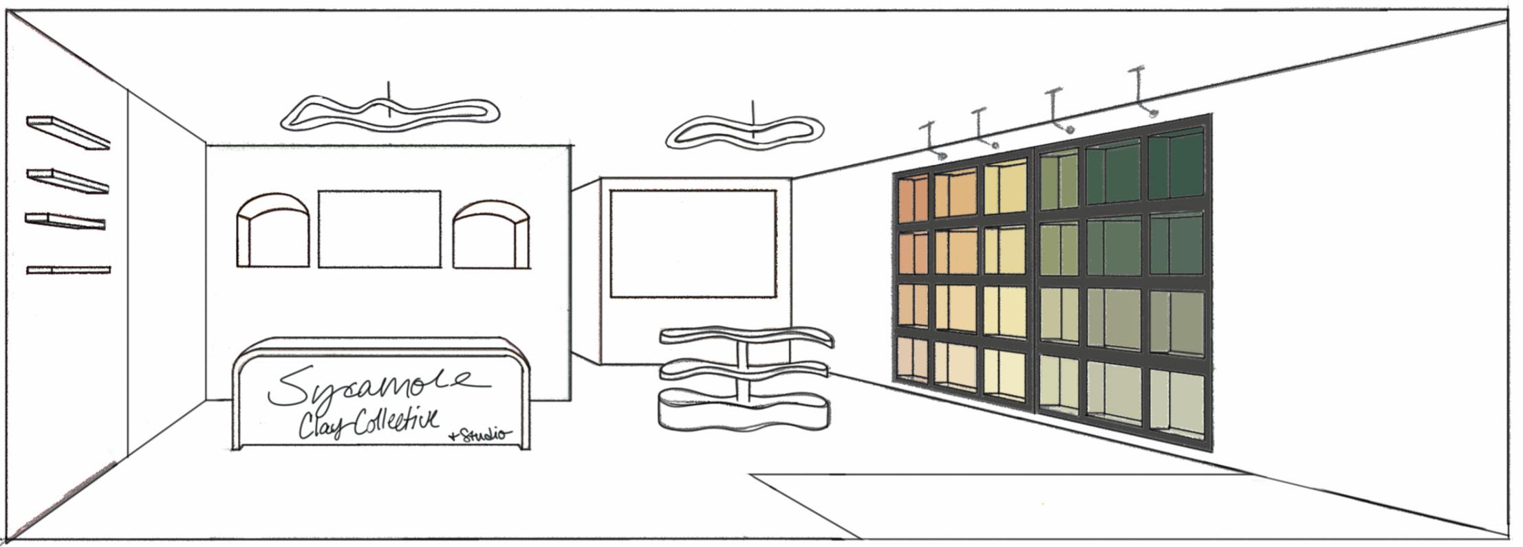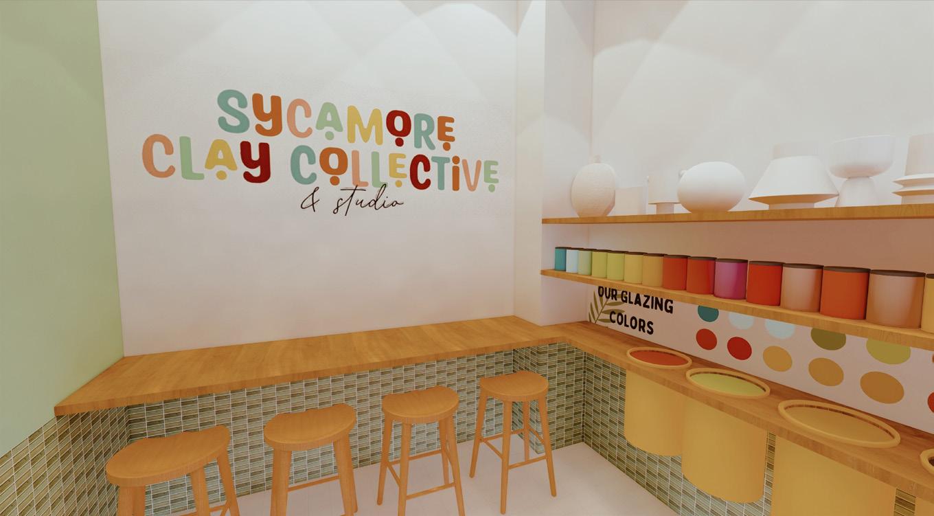 Sycamore Clay Collective will be a multi-use retail and studio space. Using bright earthy colors we will create a fun environment that will soar beyond your typical pottery store or studio. Users will be able to come in and shop local pottery, plants and accessories. Users will be able to use the space in one a time or a membership style. The space will incorporate elements that tie it to the earth, Ames, organic shapes, and inspire creativity. In the space, local cermacists and artists will showcase and sell their work. With the application of playful color and retro elements, the space will attract both younger and older crowds alike.