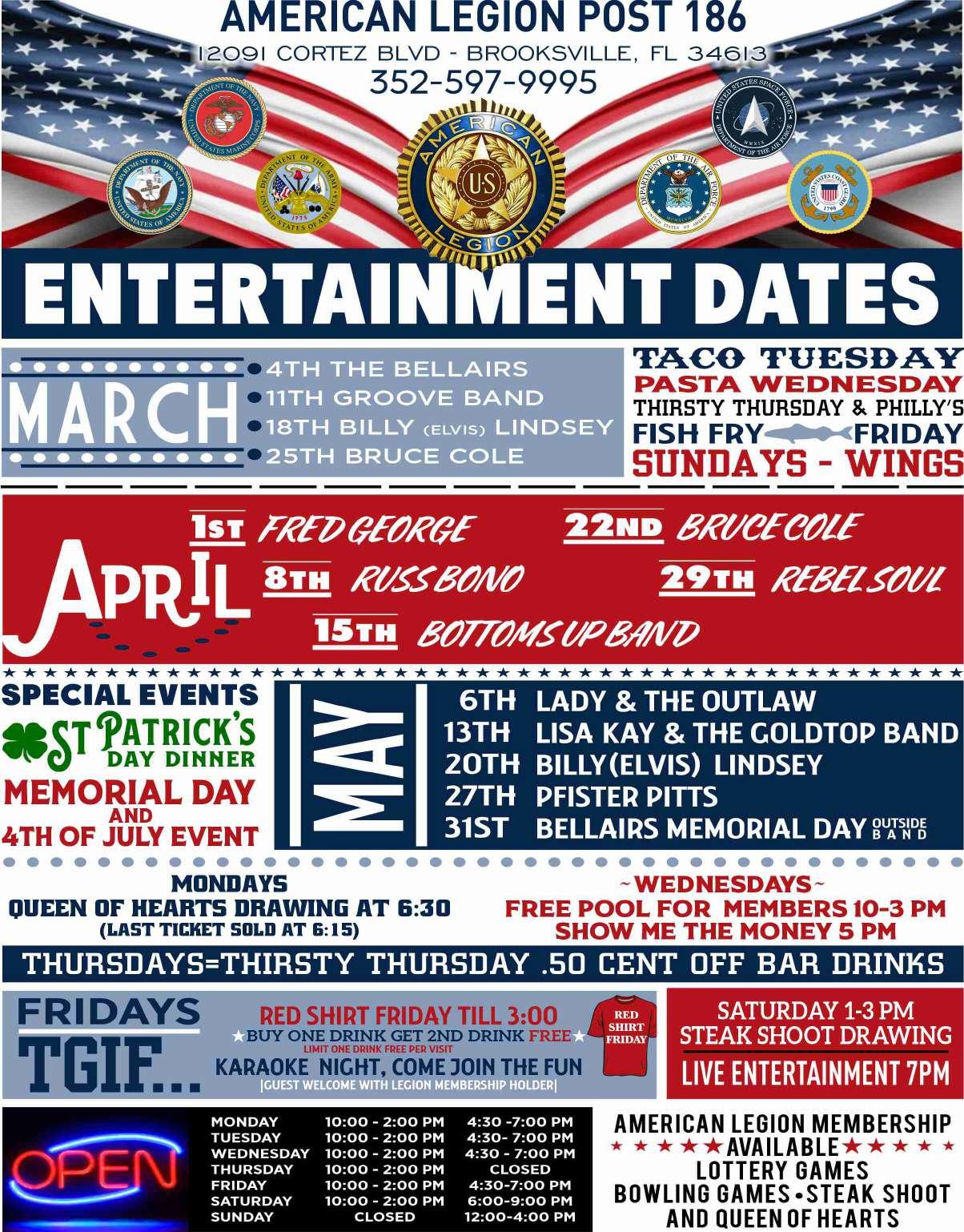 Earlier in the month we will bring back a tradition from one of our earlier years, by heading into Brooksville on Wednesday, April 5, when Elvis returns to the Coney Island stage. Bring your chair and enjoy the free show from 6 to 8 pm.