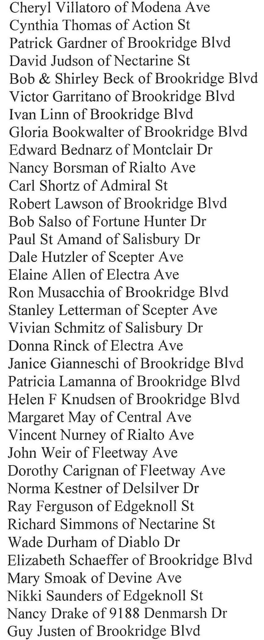 ALL BROOKRIDGE RESIDENTS WELCOME NAME POSITION TERM COMMITTEE LIASONS President st1 Vice President Treasurer Secretary Director