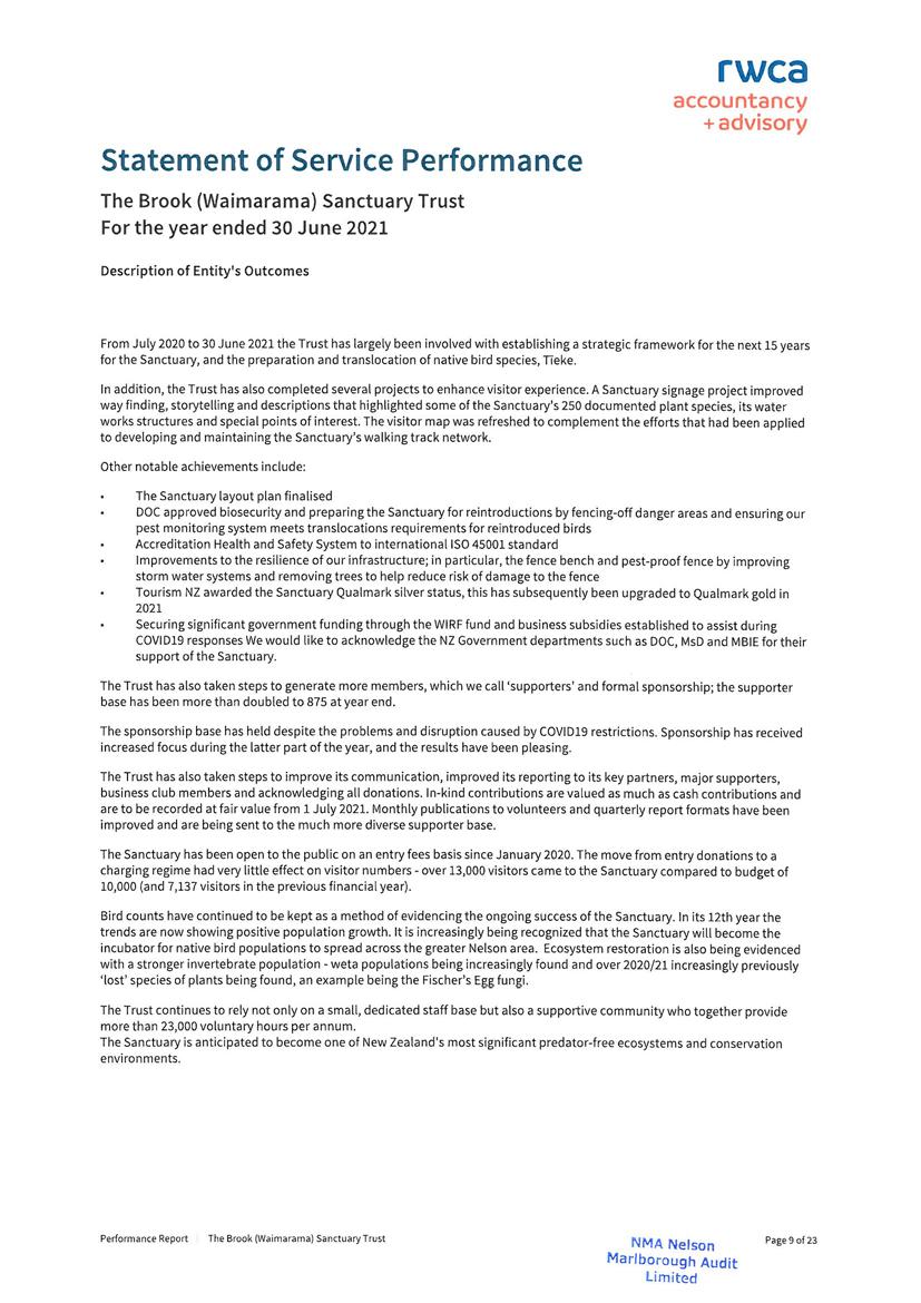 PerformanceReport TheBrook(Waimarama)SanctuaryTrust