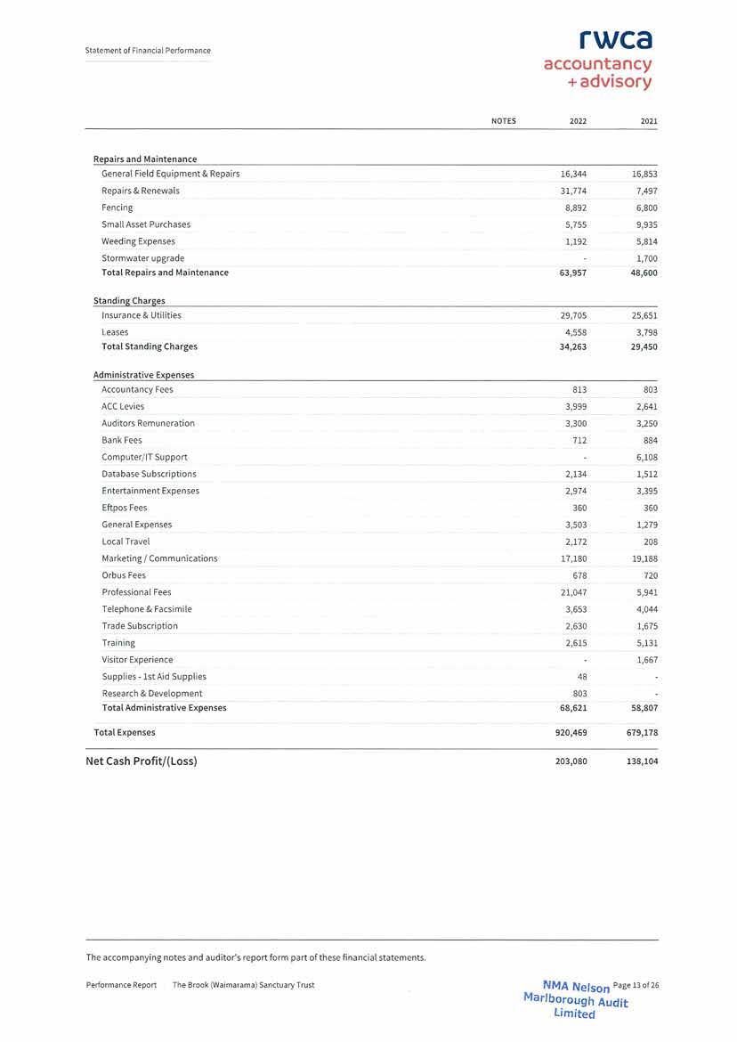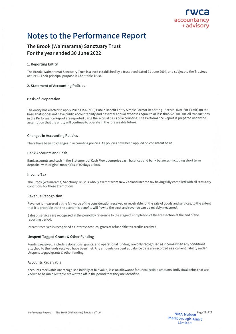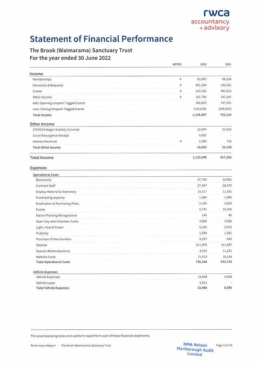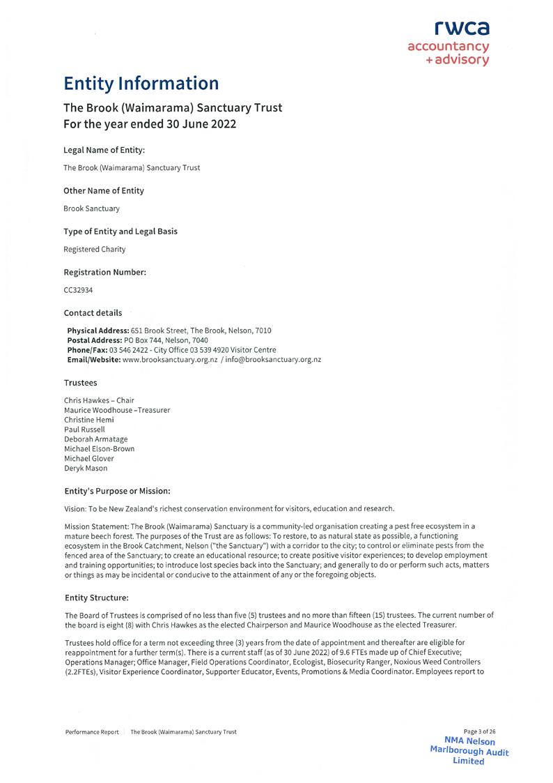 BROOK WAIMĀRAMA SANCTUARY TRUST ANNUAL REPORT 2021/22 23 PerformanceReport TheBrook(Waimarama)SanctuaryTrust Page3of23