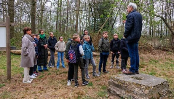 Vorige week woensdag was het zover. Een fietstocht samen met 42 leerlingen van groep 7 en 8 van de basisschool St. Stephanus. Om 9 uur verzamelen in de hal van de school. Hier werd door de Historische Kring Bornerbroek uitleg gegeven over ’80 jaar vrijheid’ en de fietstocht en stops bij 4 locaties. Bij deze locaties hebben er bijzondere gebeurtenissen plaatsgevonden tijdens de Tweede Wereld Oorlog in en rondom Bornerbroek. En de leerlingen waren er klaar voor! De oren goed geopend en aandachtig werd de info opgenomen. De belangstelling was direct aanwezig.