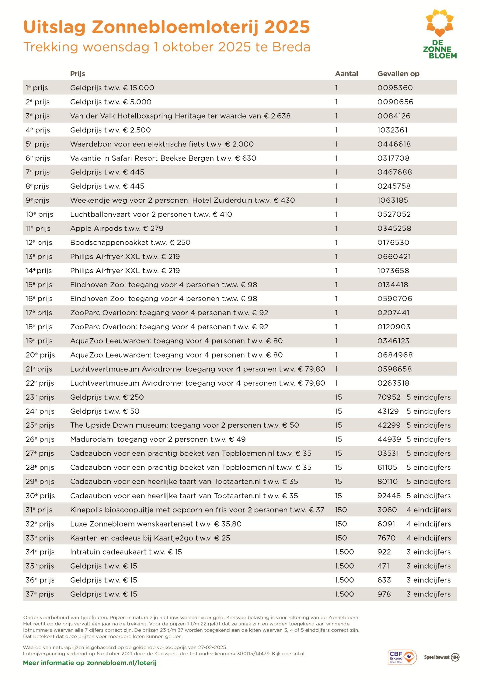 Ook willen we iedereen bedanken die loten bij ons heeft gekocht voor de Zonnebloemloterij, we hebben 1130 loten verkocht, de uitslag is te vinden elders in dit Brooksblad.